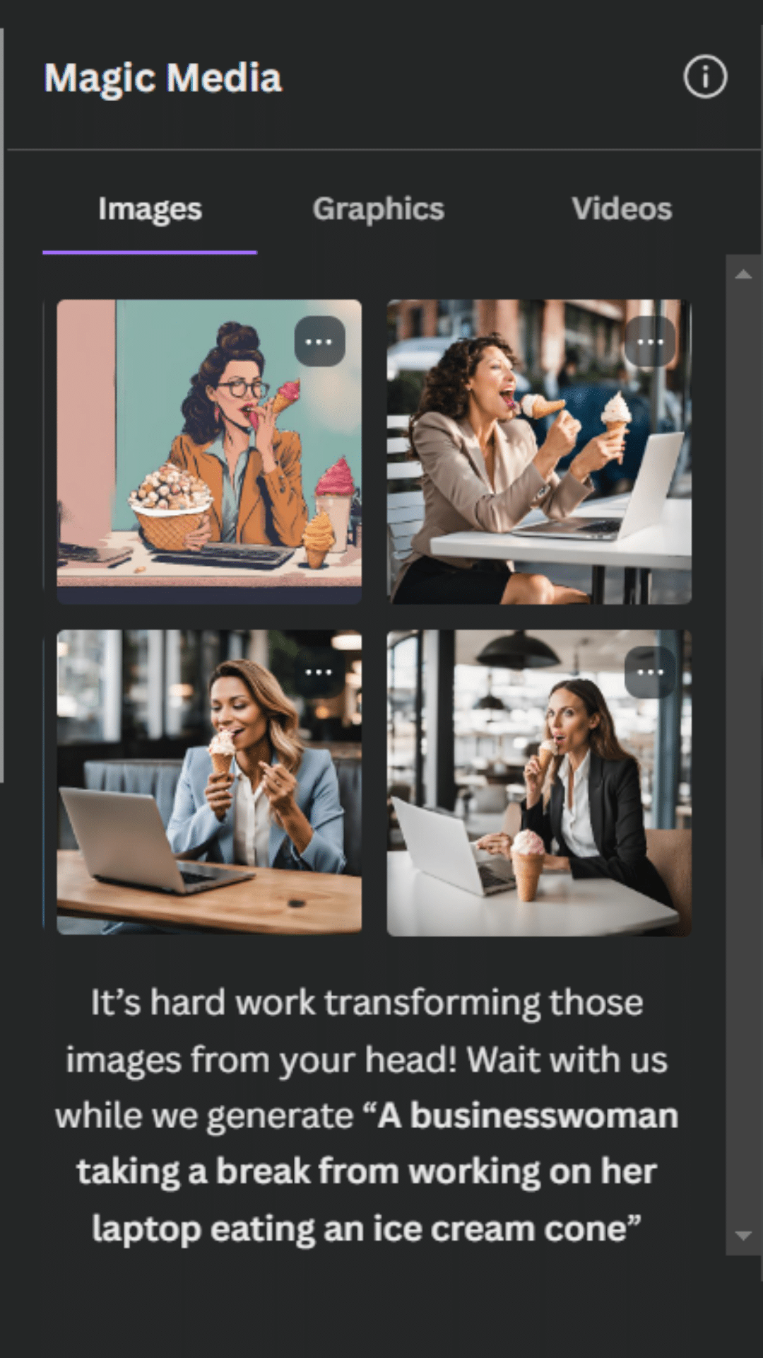 With AI, Canva can generate images from text prompts. This feature enables users to create custom graphics that perfectly match their descriptions, adding a unique touch to their projects.